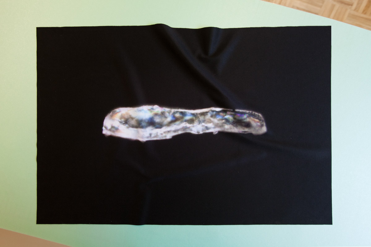 Evaluation: the healing of fragments, detail of the installation, textile print, 59x40cm 2014